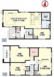 | 間取り | 4LDK 間取り内訳:洋室 4.5帖(2階)・リビングダイニングキッチン 17.7帖(1階)・洋室 7.2帖(2階)・洋室 6.5帖(2階)・洋室 4.6帖(2階) |