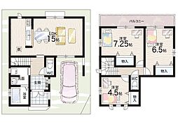間取り内訳:リビングダイニングキッチン 15帖(1階)・洋室 7.2帖(1階)・洋室 6.5帖(2階)・洋室 4.5帖(2階)