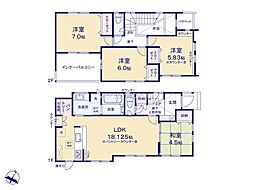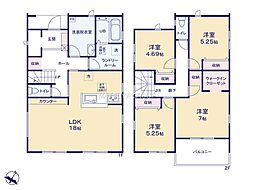 | 間取り | 4LDK 間取り内訳:リビングダイニングキッチン 18帖(1階)・洋室 7帖(2階)・洋室 5.2帖(2階)・洋室 4.6帖(2階)・洋室 5.2帖(2階) |
