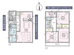 | 間取り | 4LDK 間取り内訳:リビングダイニングキッチン 17帖(1階)・和室 5畳(1階)・洋室 8帖(2階)・洋室 5.7帖(2階)x2 |