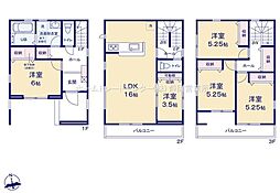 | 間取り | 4LDK 間取り内訳:リビングダイニングキッチン 16.5帖(1階)・和室 6畳(1階)・洋室 8帖(2階)・洋室 6.5帖(2階)・洋室 6帖(2階) |