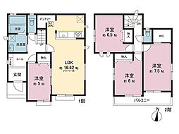 | 間取り | 4LDK 間取り内訳:リビングダイニングキッチン 16帖(1階)・和室 4.5畳(1階)・洋室 7帖(2階)・洋室 5.2帖(2階)x2 |
