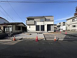 • 【外観】2号棟現地完成写真。モダンなデザインの外観。並列2台駐車可能です。当日のご案内・現地待ち合わせもご対応致します!