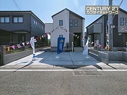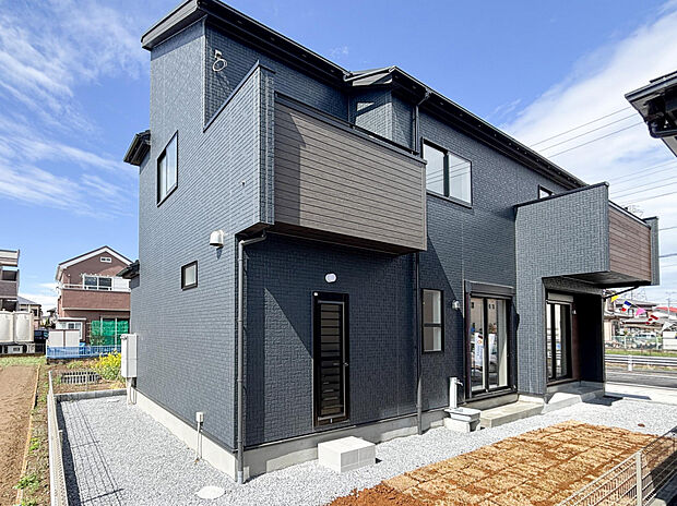• 【外観:1号棟】 並列駐車が可能な、ゆとりある外構です。