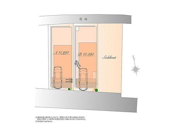 • 「建築条件付き土地」の「建物プラン例」は、土地購入者の設計プランの一例であり、プランの採用可否は任意です。