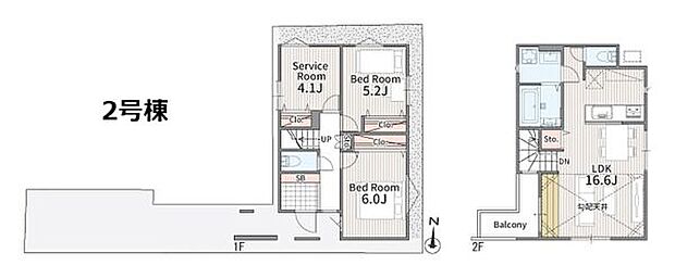 間取り 2LDK+S 建物階 木造、地上2階建て