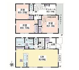 | 間取り | 4LDK 間取り内訳:リビングダイニングキッチン 18.5帖(1階)・洋室 7帖(2階)・洋室 6帖(2階)・洋室 5.3帖(2階)・洋室 4.8帖(2階) |
