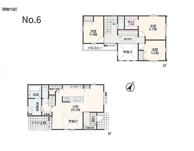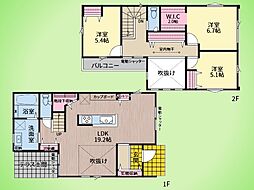 | 間取り | 3LDK 間取り内訳:リビングダイニングキッチン 19.2帖(1階)・洋室 6.7帖(2階)・洋室 5.4帖(2階)・洋室 5.1帖(2階) |