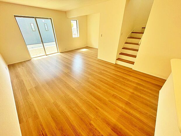 家族が集まるLDKは少しでも広く快適に♪リビング・ダイニングが見渡せるフラットキッチン♪三面鏡にハンドシャワー付き◎使いやすい洗面台♪節水型トイレで家計に優しい♪収納が充実しているので綺麗が保てます◎