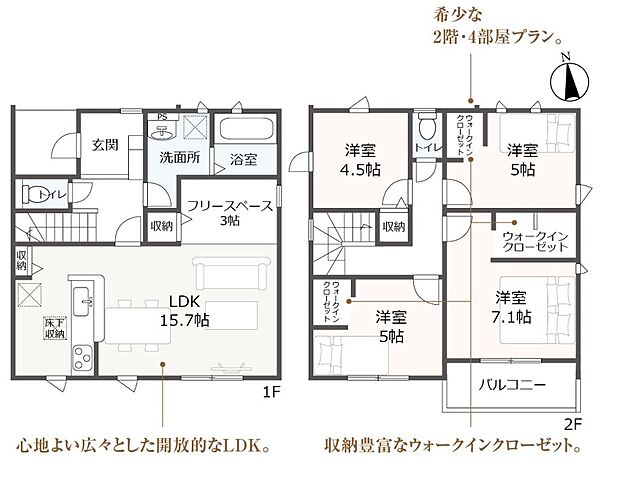 • 「建築条件付き土地」の「建物プラン例」は、土地購入者の設計プランの一例であり、プランの採用可否は任意です。