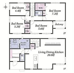 | 間取り | 4SLDK 間取り内訳:リビングダイニングキッチン 16帖(1階)・和室 5.2畳(1階)・洋室 8帖(2階)・洋室 5.2帖(2階)x2・収納(2階) |