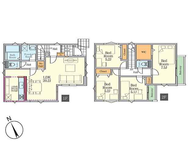 • 「建築条件付き土地」の「建物プラン例」は、土地購入者の設計プランの一例であり、プランの採用可否は任意です。