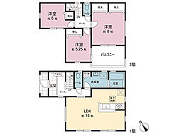 間取り内訳:リビングダイニングキッチン 18.2帖(1階)・和室 4.5畳(1階)・洋室 7.5帖(2階)・洋室 5.7帖(2階)・洋室 5.7帖(2階)