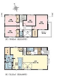 間取り内訳:リビングダイニングキッチン 20.2帖(1階)・洋室 5.2帖(2階)・洋室 5.2帖(2階)・洋室 5.2帖(2階)・洋室 7.6帖(2階)