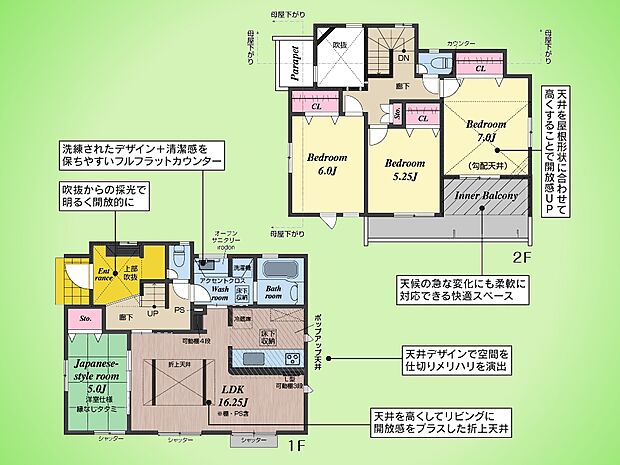 • 建物の内容は、土地購入者の自由意思により決定可能で、土地売買契約後、 建築請負会社と購入した土地に建設する建物について協議することになります。