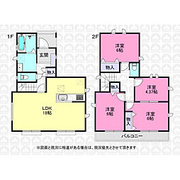 | 間取り | 4LDK 間取り内訳:リビングダイニングキッチン 18.2帖(1階)・洋室 4.5帖(2階)・洋室 5.2帖(2階)・洋室 4.5帖(2階)・洋室 7.2帖(2階) |
