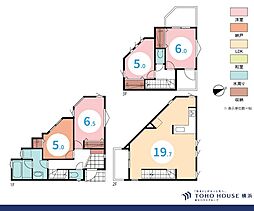 | 間取り | 3LDK 間取り内訳:リビングダイニングキッチン 18帖(1階)・その他 4帖(1階)・洋室 10.5帖(2階)・洋室 5.2帖(2階)x2 |