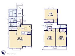 | 間取り | 3SLDK 間取り内訳:リビングダイニングキッチン 15.7帖(1階)・洋室 4.5帖(2階)・洋室 4.5帖(2階)・洋室 6帖(2階)・収納 3帖(2階) |