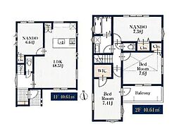 | 間取り | 2SLDK(2LDK+2S) 間取り内訳:リビングダイニングキッチン 19帖(1階)・洋室 8.6帖(2階)・洋室 6.9帖(2階)・収納 6帖(2階)・収納 4.6帖(1階) |