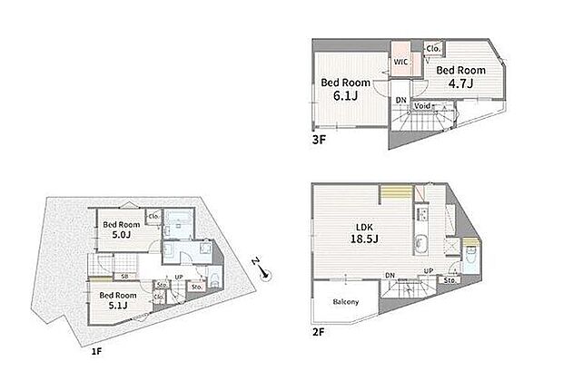間取り 4LDK 建物階 木造、地上3階建て