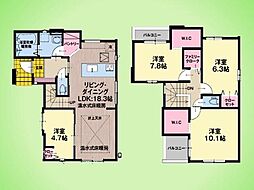 間取り内訳:リビングダイニングキッチン 23.7帖(1階)・洋室 9帖(2階)・洋室 5.4帖(2階)・洋室 5.2帖(2階)・洋室 3帖(2階)x4