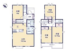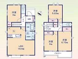 | 間取り | 4LDK 間取り内訳:リビングダイニングキッチン 16.5帖(1階)・洋室 6帖(1階)・洋室 6.7帖(2階)・洋室 5.2帖(2階)・洋室 6帖(2階) |