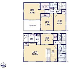 | 間取り | 4LDK 間取り内訳:リビングダイニングキッチン 15帖(1階)・洋室 5.2帖(1階)・洋室 7帖(2階)・洋室 6帖(2階)x2 |