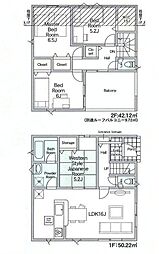 | 間取り | 3LDK 間取り内訳:リビングダイニングキッチン 17帖(1階)・洋室 6帖(2階)・洋室 6帖(2階)・洋室 7.2帖(2階) |