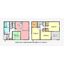 | 間取り | 3LDK 間取り内訳:リビングダイニングキッチン 13.3帖(1階)・洋室 7.5帖(2階)・洋室 6.7帖(2階)・洋室 6.2帖(2階)・和室 4.5畳(1階) |