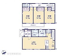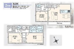 間取り内訳:リビングダイニングキッチン 15帖(2階)・洋室 7.5帖(1階)・洋室 5.2帖(2階)・洋室 6帖