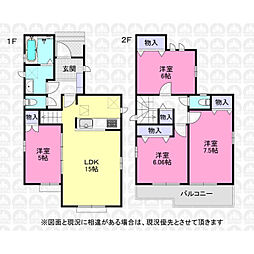 | 間取り | 4LDK 間取り内訳:リビングダイニングキッチン 15帖・洋室 7.5帖・洋室 5.2帖・洋室 6帖・洋室 5.2帖 |