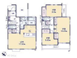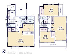 | 間取り | 3LDK 間取り内訳:リビングダイニングキッチン 17.5帖(1階)・洋室 10.2帖(2階)・洋室 6帖(2階)・洋室 5.2帖(2階) |