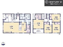 | 間取り | 4LDK 間取り内訳:リビングダイニングキッチン 17.2帖(1階)・洋室 7帖(2階)・洋室 6帖(2階)・洋室 5.4帖(2階)・洋室 5.2帖(2階) |
