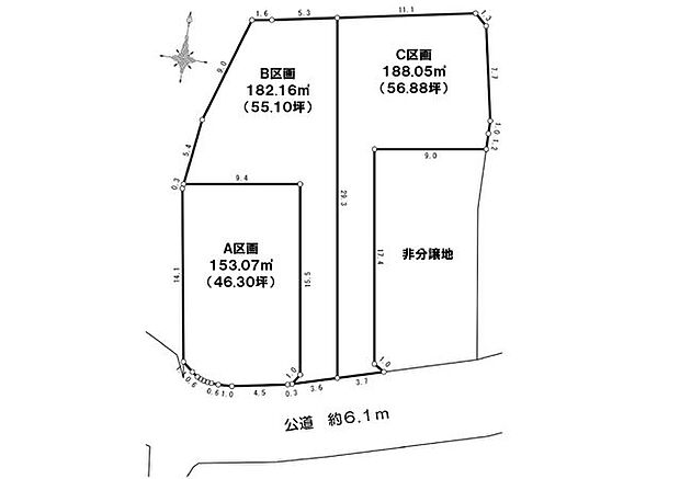 • 南 (公道 幅員 6.10m 接面 3.70m)