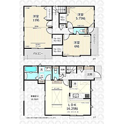 間取り内訳:リビングダイニングキッチン 16.2帖・洋室 11帖・洋室 5.7帖・洋室 6帖