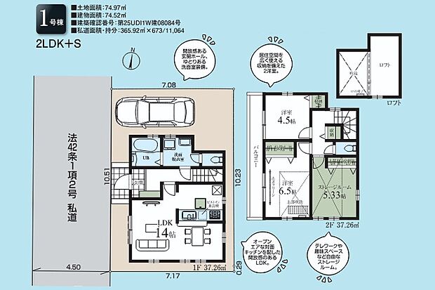 西側4.5m、私道負担22.25m2