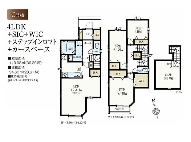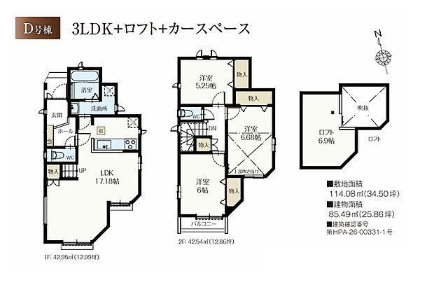 | 建物面積 | 85.49m2~94.60m2 | ||