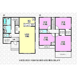 | 間取り | 4LDK | 建物階 | 木造在来軸組工法2階建(910モジュール) |