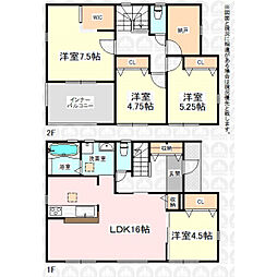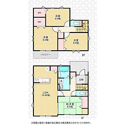 間取り内訳:リビングダイニングキッチン 16.6帖(1階)・和室 6.5畳(1階)・洋室 8帖(2階)・洋室 6帖(2階)x2
