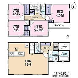 | 間取り | 4LDK 間取り内訳:リビングダイニングキッチン 19帖(1階)・洋室 6.5帖(2階)・洋室 5.2帖(2階)・洋室 5帖(2階)・洋室 4.5帖(2階) |