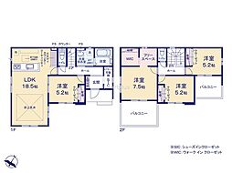 | 間取り | 4LDK 間取り内訳:リビングダイニングキッチン 18.2帖(1階)・洋室 6帖(1階)・洋室 9.7帖(2階)・洋室 7.2帖(2階)・洋室 6.2帖(2階) |