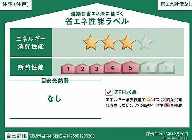 この物件の省エネ性能がわかる「省エネ性能ラベル」です。省エネ性能ラベルは2024年4月以降に建築確認申請した物件などで表示しています。