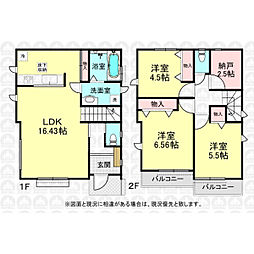 屋上ルーフバルコニー付/駐車1台可(車種制限あり)/2階リビング階段LDK18.9帖/WIC付主寝室7帖/長期優良住宅/耐震等級3取得予定/建物設備・収納充実/全室2面採光