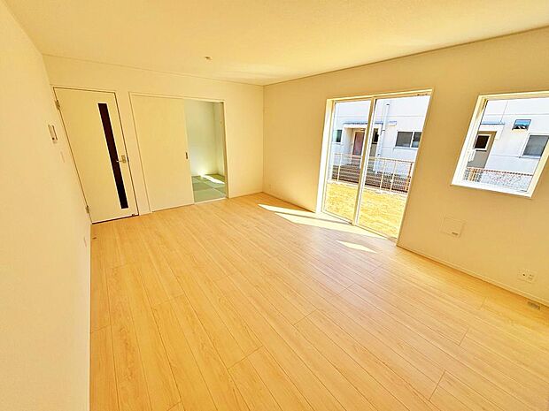 家族が集まるLDKは少しでも広く快適に♪リビング・ダイニングが見渡せるフラットキッチン♪三面鏡にハンドシャワー付き◎使いやすい洗面台♪節水型トイレで家計に優しい♪耐震等級3取得の地震に強い家◎