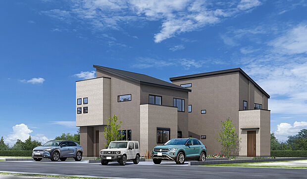 • 【スタイリッシュなシンプルスタイル】流行りのモダンテイストに暖かみをいれた外観となります。駐車場も並列2台可能となります。