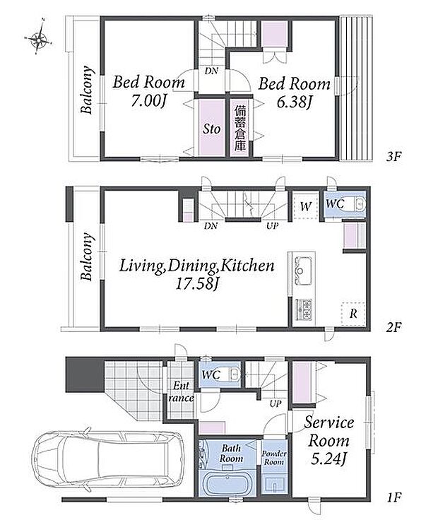 間取り 1LDK+2S~3LDK+S 建物階 木造、地上3階建て