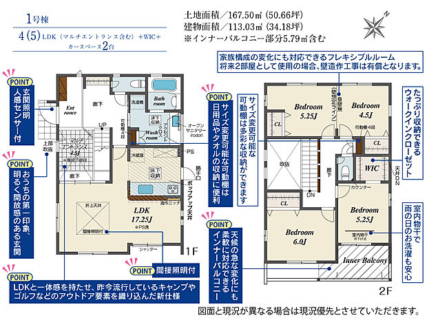 建物面積 106.40m2(約32.18坪)~113.03m2(約34.19坪)