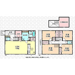間取り内訳:リビングダイニングキッチン 16帖(1階)・洋室 4.5帖(1階)・洋室 5.2帖(2階)x2・洋室 7.2帖(2階)