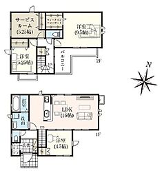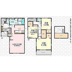 | 間取り | 3SLDK(ロフト:4.96?) 間取り内訳:リビングダイニングキッチン 18.5帖(1階)・洋室 5.2帖(2階)・洋室 5.6帖(2階)・洋室 8.1帖(2階)・収納(2階) |