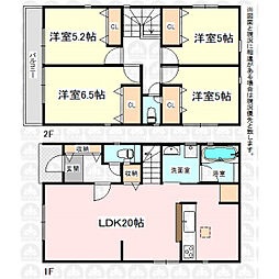 | 間取り | 4LDK 間取り内訳:リビングダイニングキッチン 19帖・洋室 5帖・洋室 6帖・洋室 6.5帖・収納 2帖 |